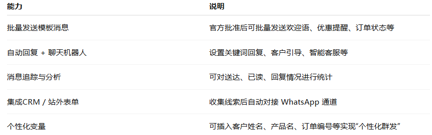 三、进阶方式:借助 WhatsApp Business API 实现自动化与批量化发送